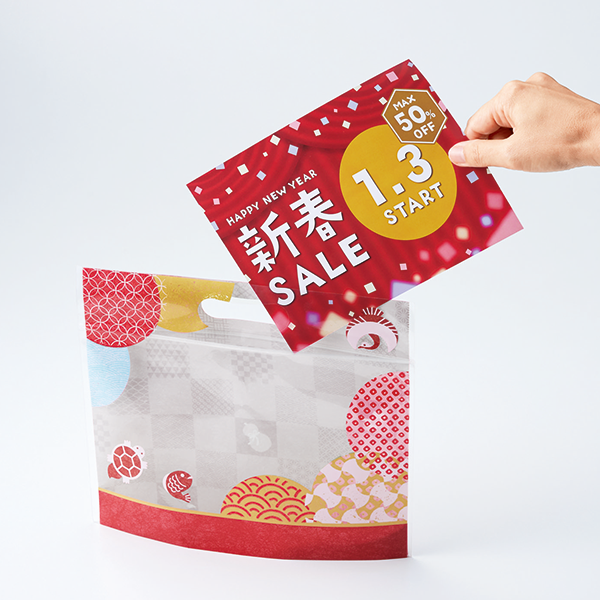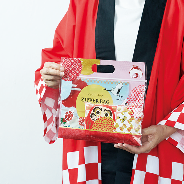 かわいいヨコ型福袋が新登場!!お客様の方でチラシや新製品などをセットしていただくこともできるよう、チャック袋にしました!