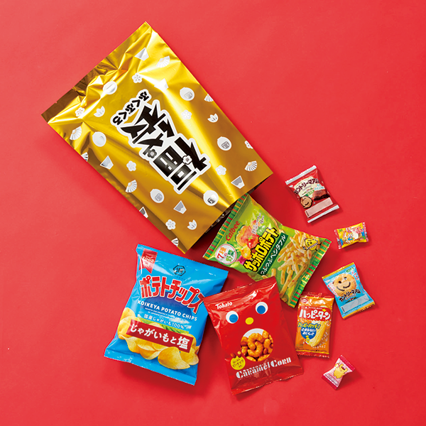 【11/4以降出荷開始】金ぴかお菓子福袋が仲間入り!キラキラ袋で売り場やブースを華やかに彩ります。大人ももらって嬉しいお菓子のセットです。