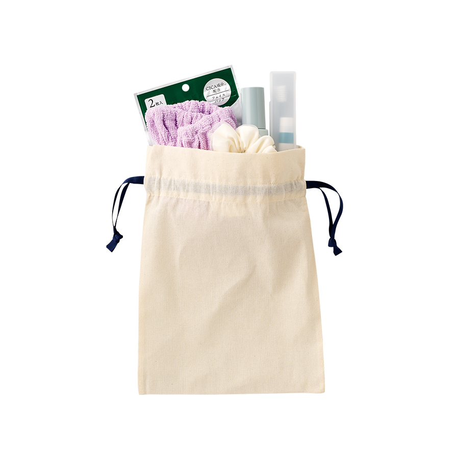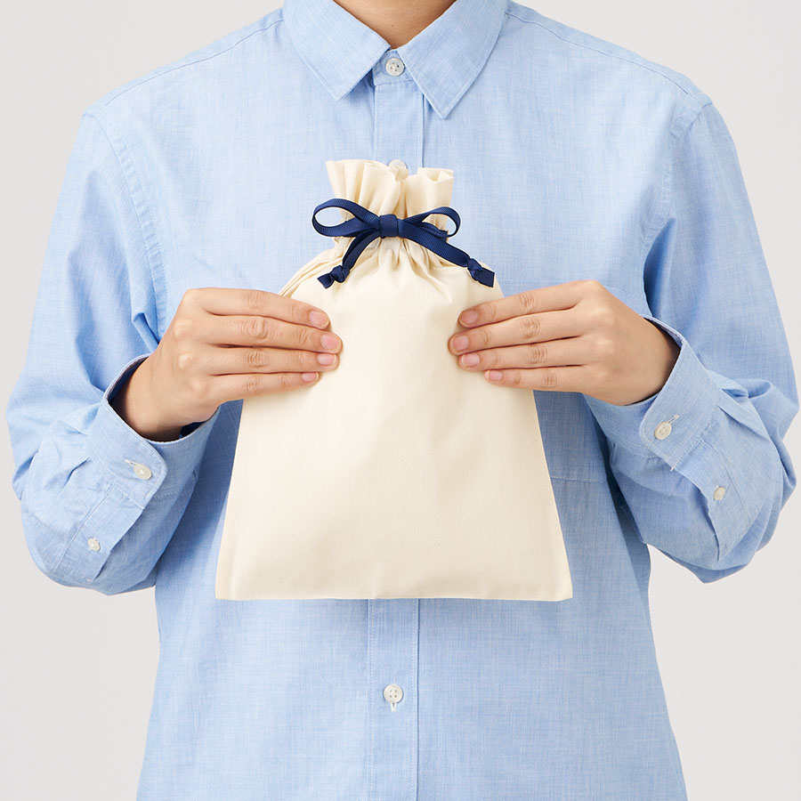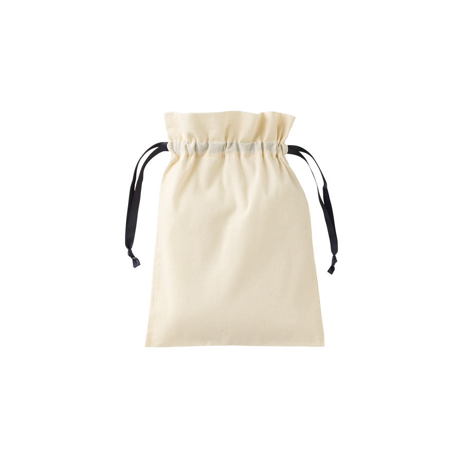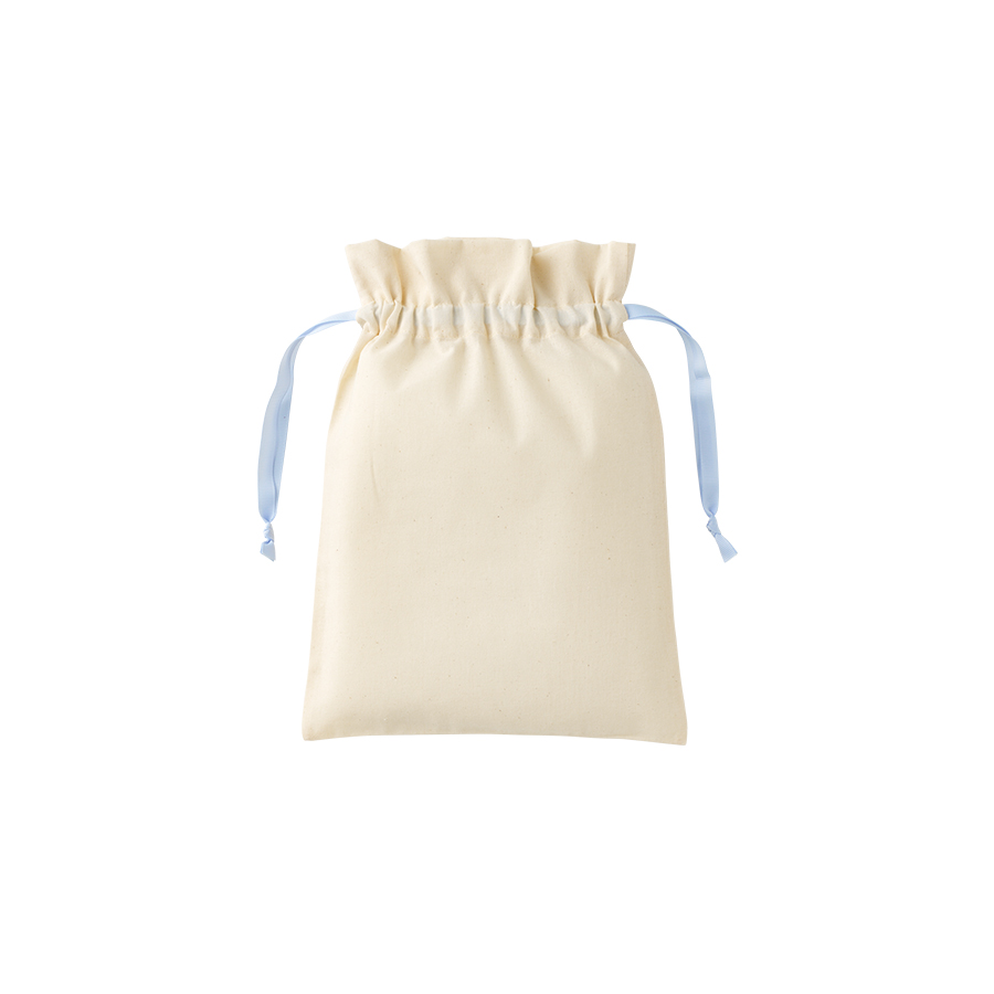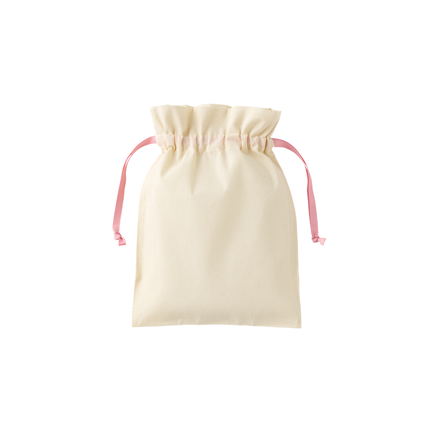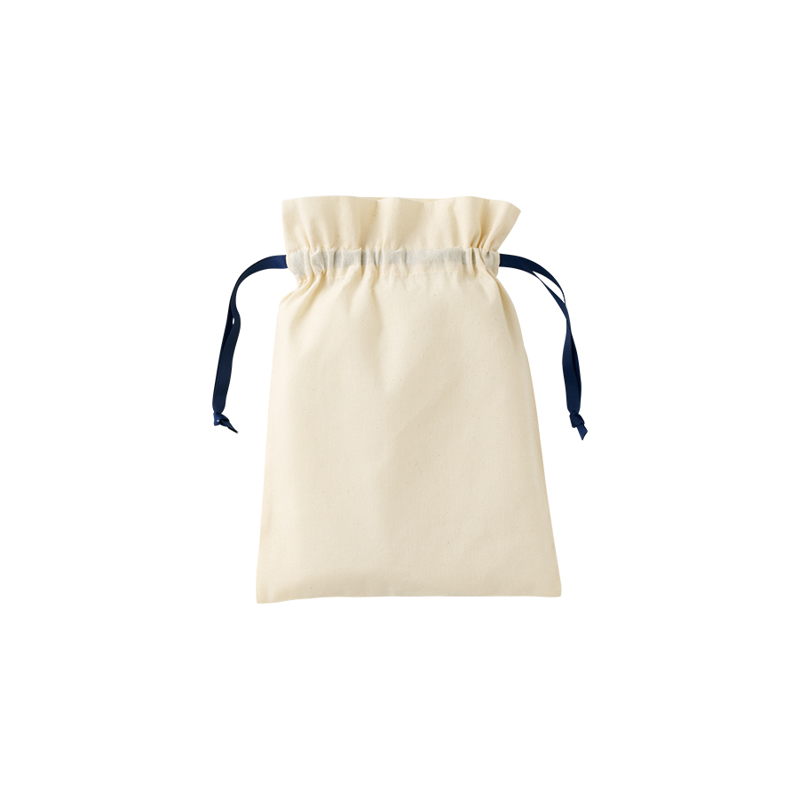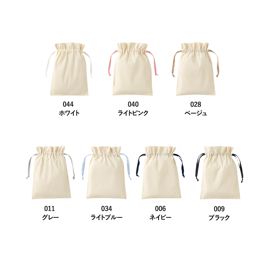7色展開のカラーリボンがポイントのコットン巾着です。