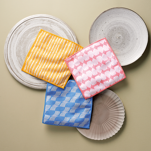 窓からのぞく和モダンデザイン柄がおしゃれ。使い分けもしやすい3枚組のキッチンクロスです。 京都で生まれた伝統柄「伊砂文様」の版権商品。