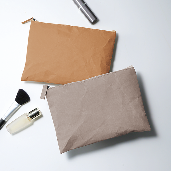 性別問わず使えるナチュラルカラーのシンプルポーチ。フラット型なのでバッグの中にもすっきり収まります。 水に強いウォッシャブルペーパーを使用しているので、洗面所に持ち込んで使うときも濡れて水浸しになる心配がありません。シンプルかつ機能的なポーチです。