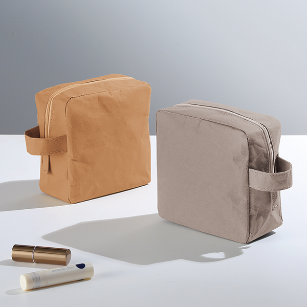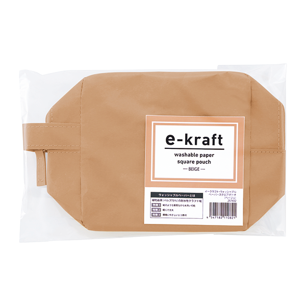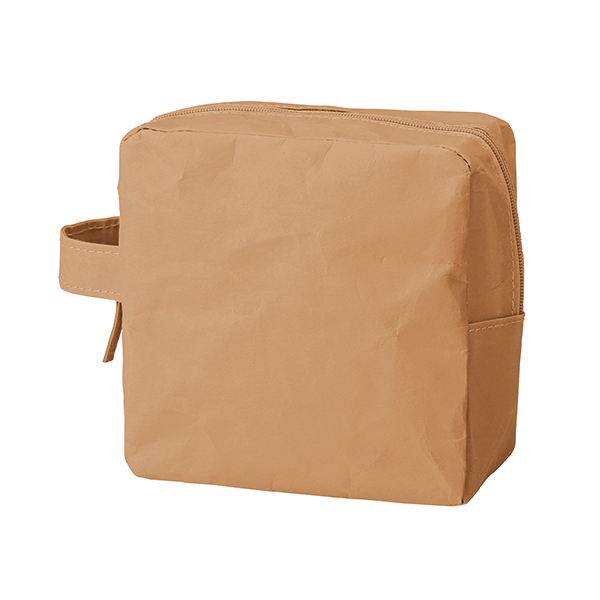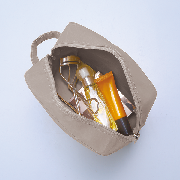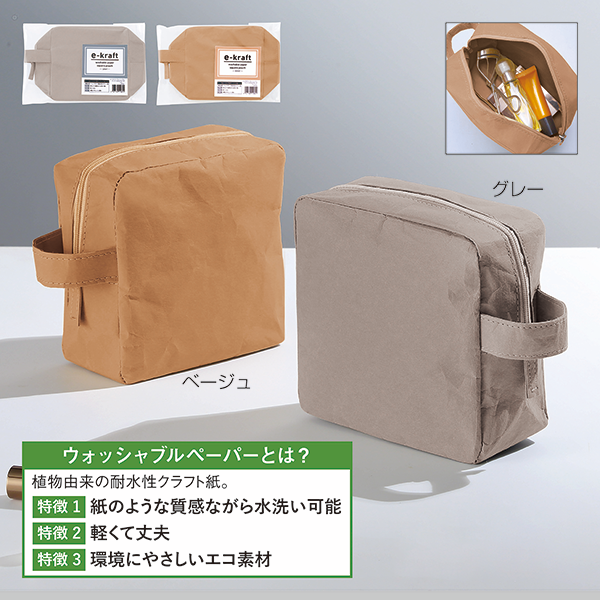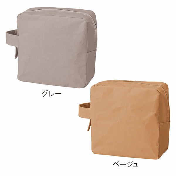 自立する端正なフォルムのスクエア型ポーチ。持ち運びに便利な持ち手がポイント!大きく開くので出し入れも◎。 水に強いウォッシャブルペーパーを使用しているので、洗面所に持ち込んで使うときも濡れて水浸しになる心配がありません。シンプルかつ機能的なポーチです。