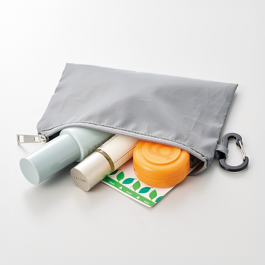 S・Mの2サイズ展開で、Mサイズはコスメやガジェットなど少し大きめのものでも入れることができるサイズ感です。