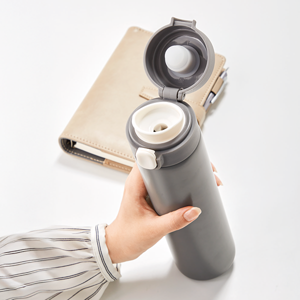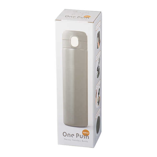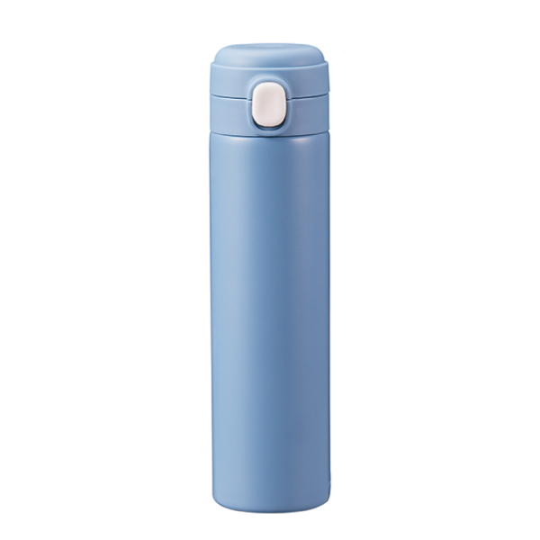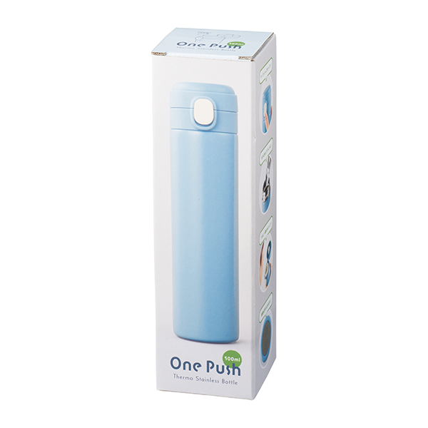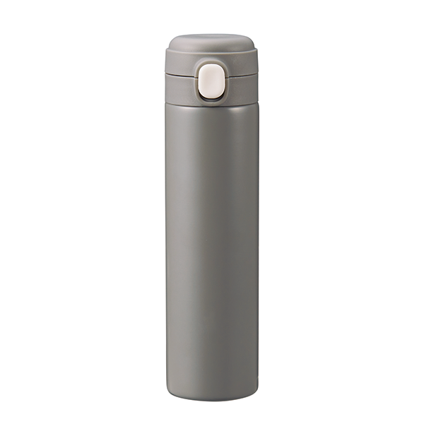 プッシュボタンにロックとオープン機能が付いた、直飲みタイプの保冷温ステンレスボトルです。 底面には滑り止めが付いています。