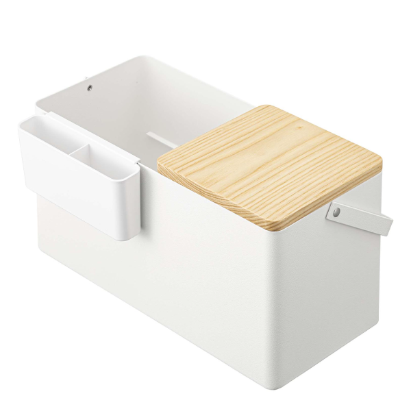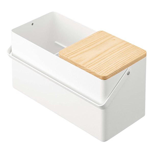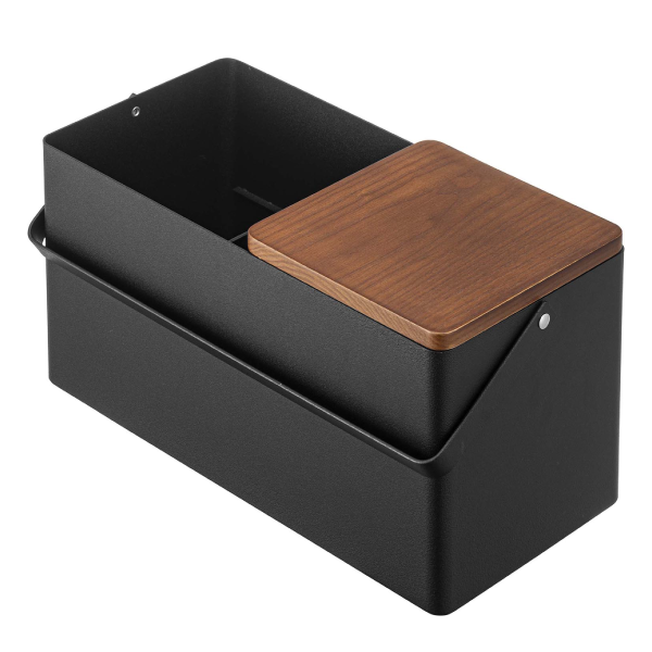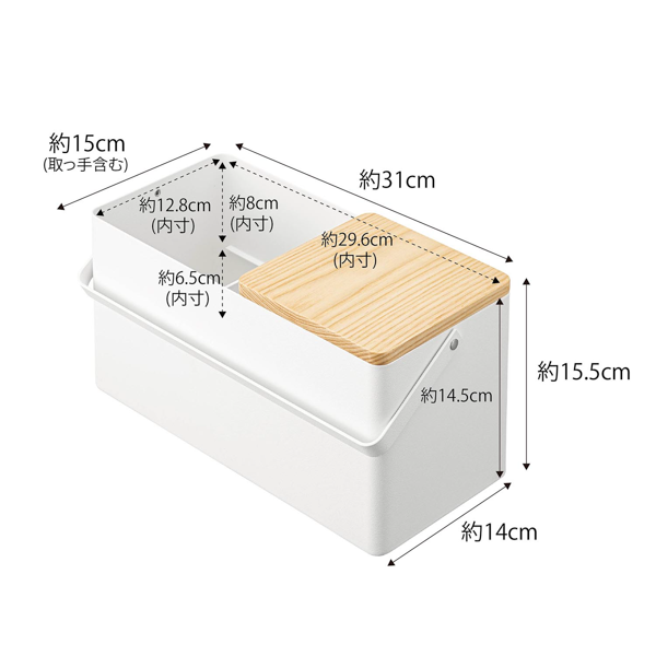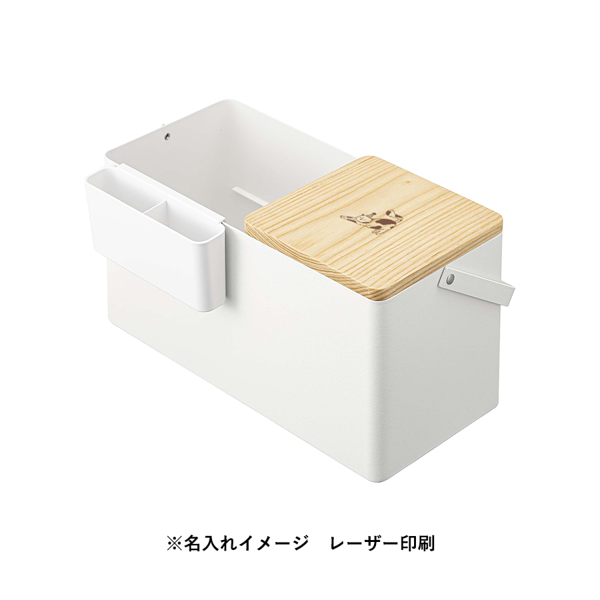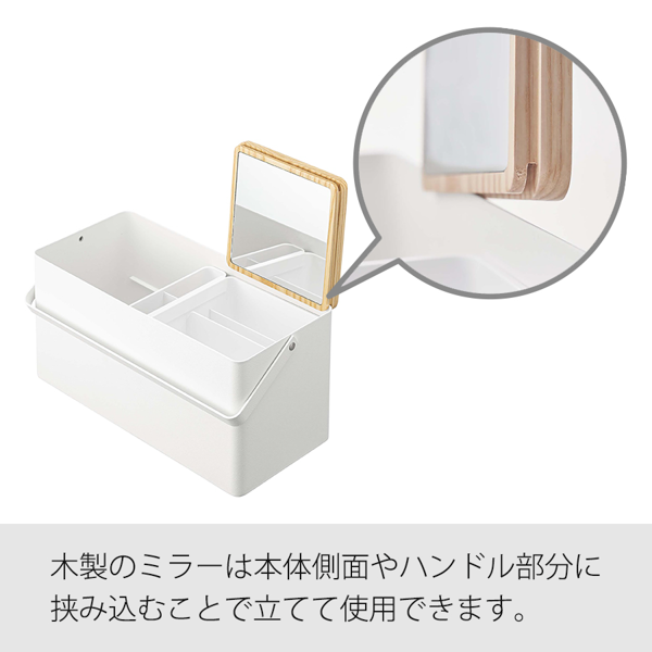 | 素材 | 容器:スチール(粉体塗装) 蓋:天然木(ラッカー塗装) ミラー:2mm厚ガラス トレー:ABS樹脂 |