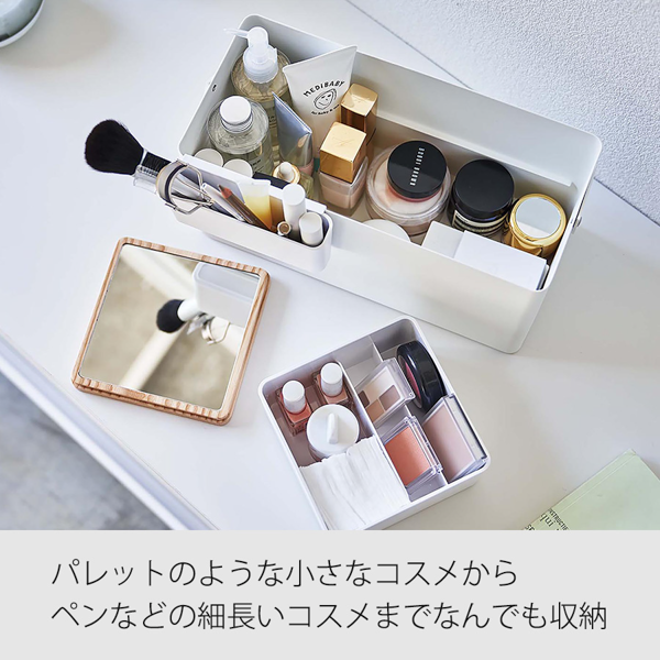 収納を自分好みにカスタマイズできるメイクボックスです。