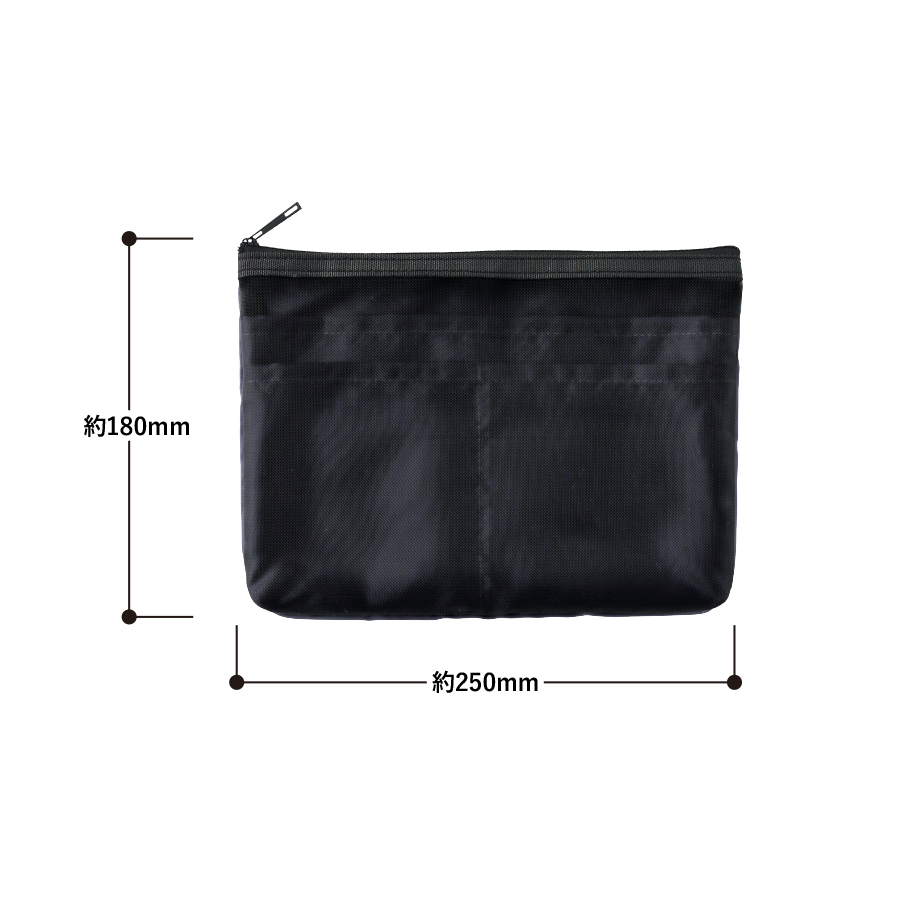 ポケットは5個ついているため、ポーチの中で中で細かく整理できます。