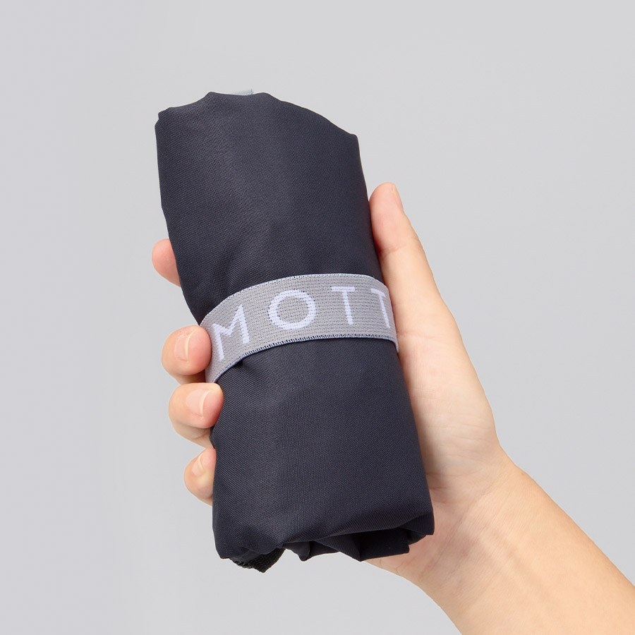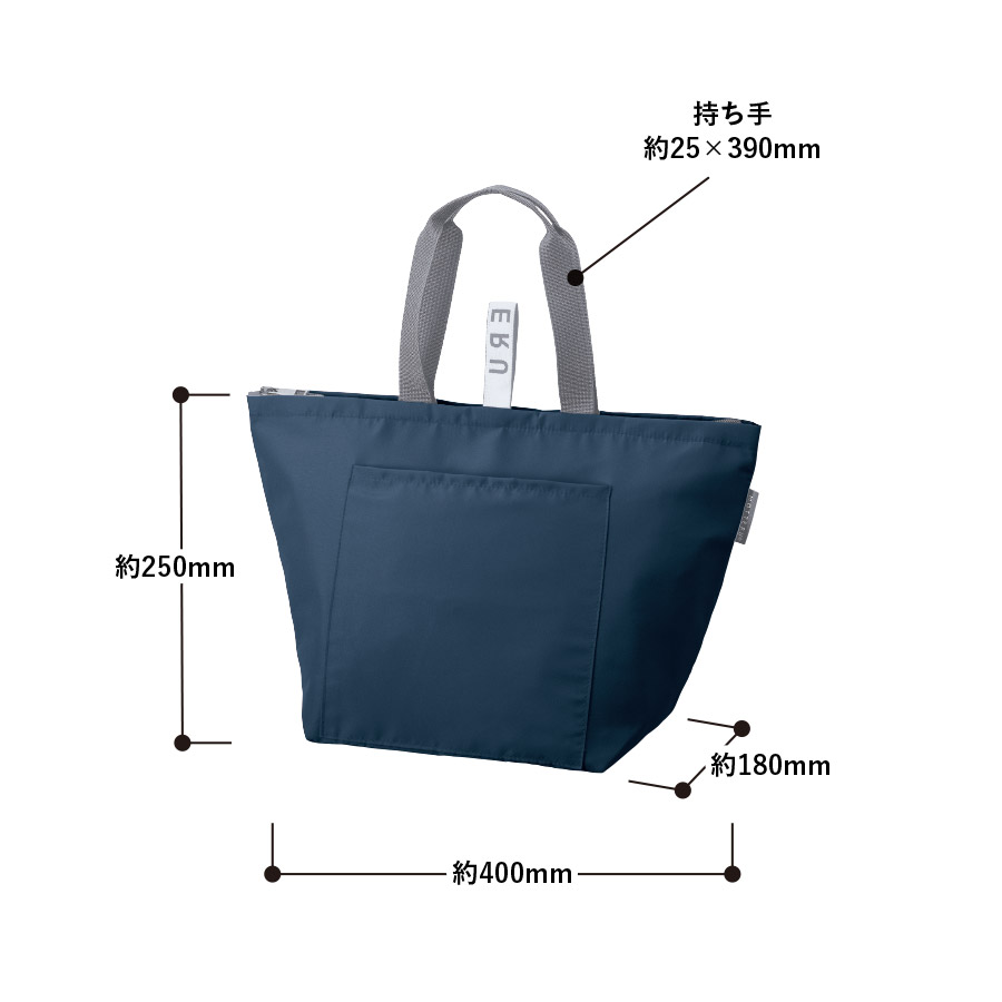裏面のアルミシートがアルミコーティング生地になり、より畳みやすく持ち運びやすいサイズ感がうれしい保冷エコバッグです。