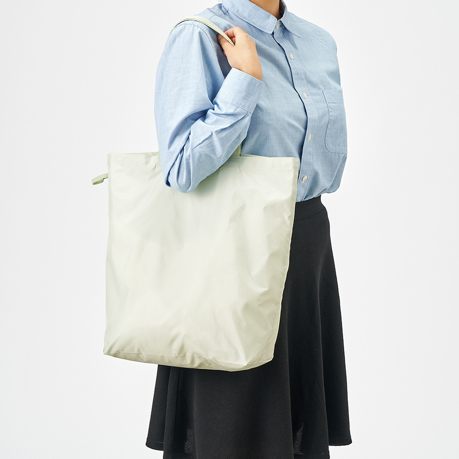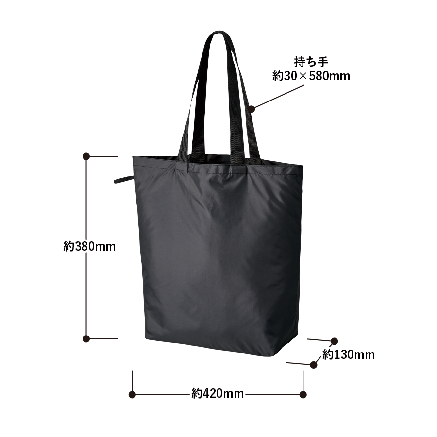 上質な光沢感としなやかでさらっとした手触りが特徴の、ファインライトポリエステルを使用したマチありタイプのエコバッグです。