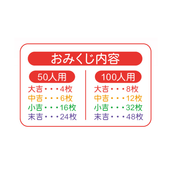 | 容量 | おみくじお菓子セット×50、ディスプレイボックス×1、店頭用お知らせPOP×2枚 |