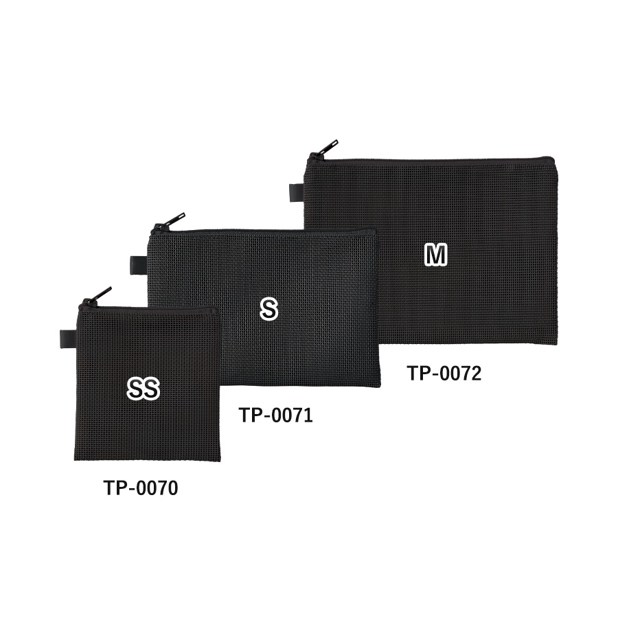 SS・S・Mの3サイズ展開で、Mサイズは詰め替えボトルなども収納できるため、旅行用の仕分けポーチなどにもぴったりです。