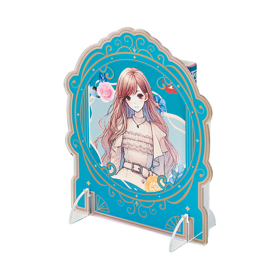 漫画の表紙とつながるようなデザインにする事で、アクリルスタンドのように漫画を飾る事ができます。