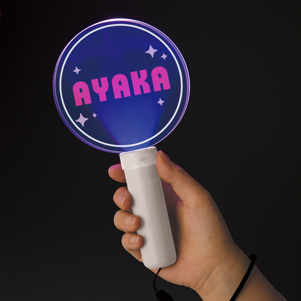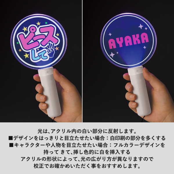 オリジナル型抜きで好きなカタチにできるアクリルペンライトスティック用プレートと、それを差し込めるペンライトスティックとのセットです。
