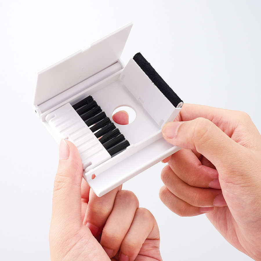 2種類のブラシが付いており、PC画面やキーボードの埃などをきれいに取り除いてくれます。