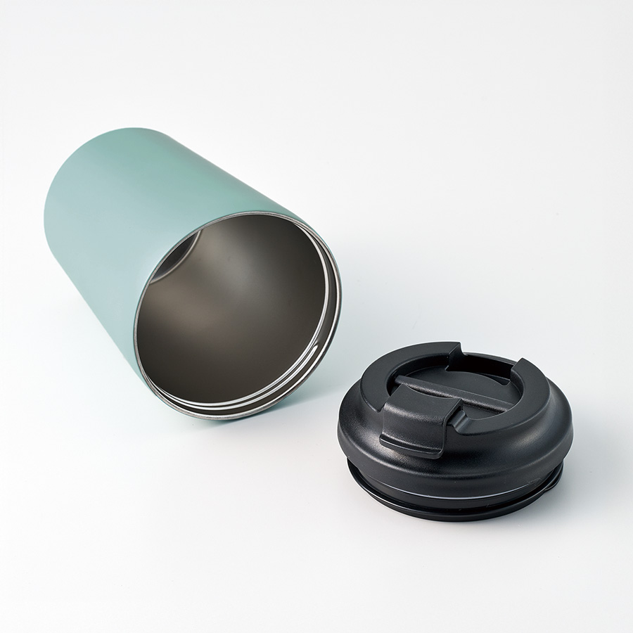 リッド付きで持ち運びやすいステンレスサーモタンブラーです。