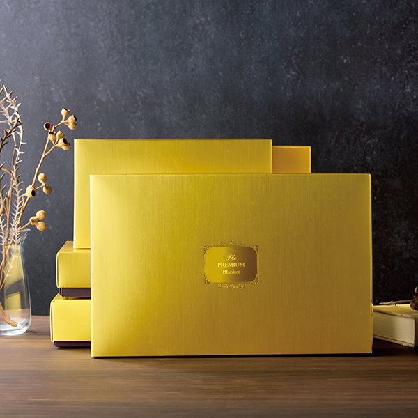 ゴールドの帯を巻いて、箱を開けた時の驚きまでもプレミアム。贈答品に最適な身蓋式の化粧箱がその価値をさらに高めます。
