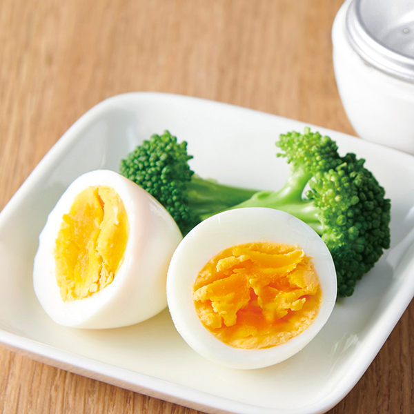 半熟なら600Wで約5分、固ゆでなら600Wで約7分でできあがり!朝食やお弁当作りに活躍します。
