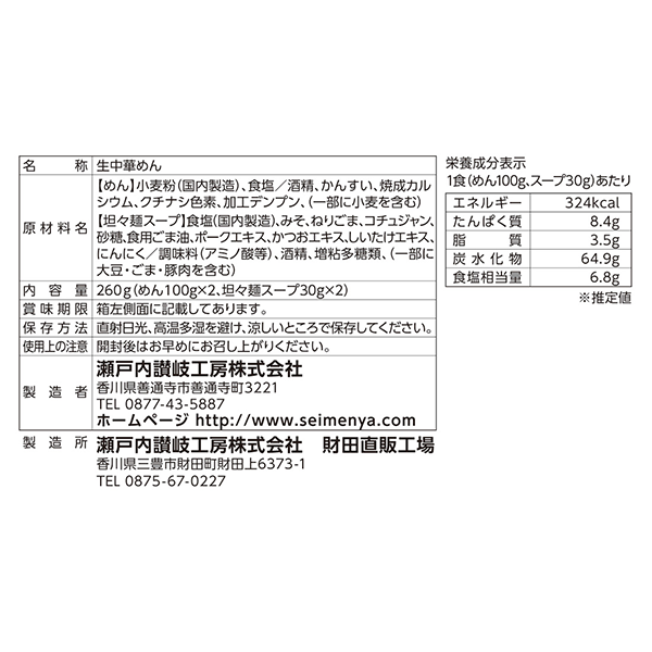 | 付属品 | <セット内容> 麺100g×2 胡麻坦々スープ30g×2 |