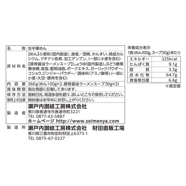 | 付属品 | <セット内容> 麺100g×2 豚骨醤油スープ30g×2 |