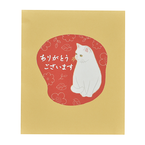 リラックスしたにゃんこが目印。150個以上50個単位でお申込みいただけます。