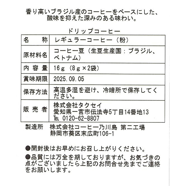 パッケージのかわいい猫がお客様に感謝の気持ちを伝えます。ドリップコーヒー2包入り。