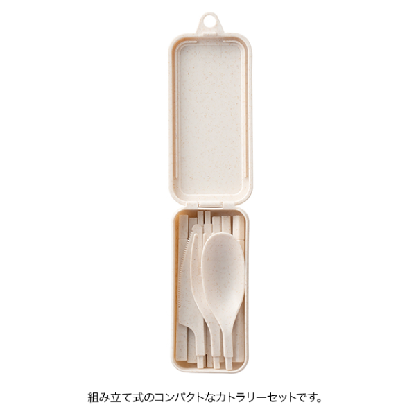| 本体サイズ | ケース:W55×H125×D22mm カトラリー(組立時):箸/全長187mm、スプーン/全長174mm、 ナイフ/全長179mm、フォーク/全長174mm |
