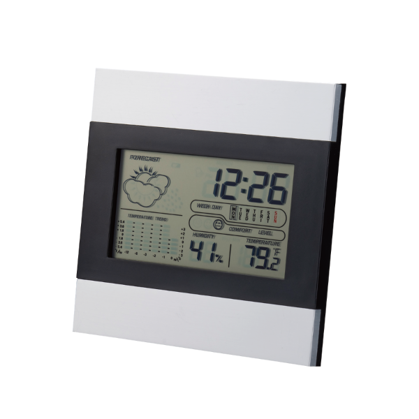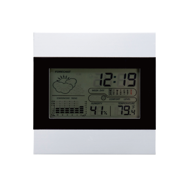 大きくて見やすい液晶表示が人気の、高級感あふれるアルミフレームの多機能な天気予報時計です。 スタンドや置き時計としても壁掛け時計としてもご使用していただけます。名入れも映えるデザインで、創立記念品や卒業記念品に喜ばれます。