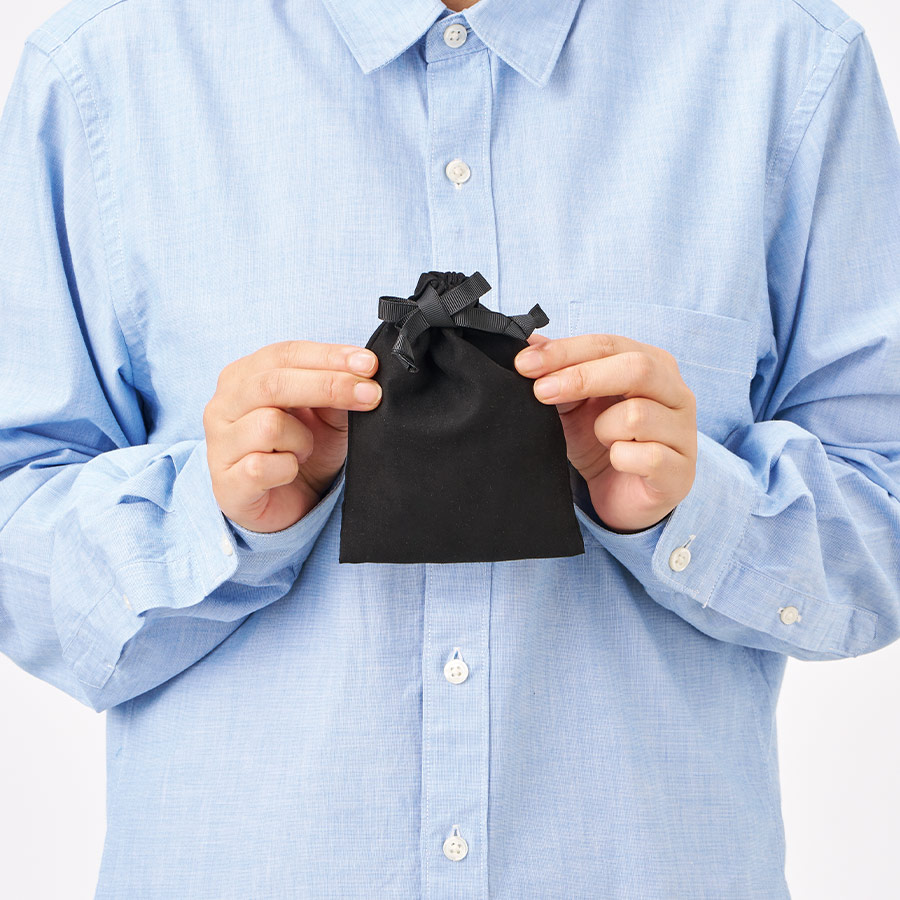 またリボンは長めに設定しており、パッケージとして使用する際には巾着上部でリボン結びができる仕様です。
