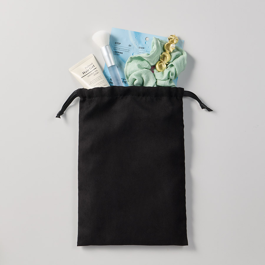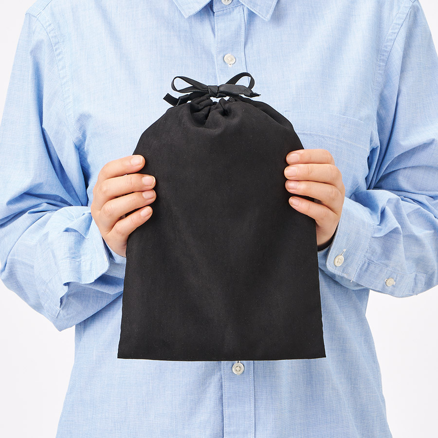 またリボンは長めに設定しており、パッケージとして使用する際には巾着上部でリボン結びができる仕様です。