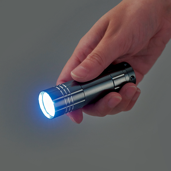 高級感あふれるメタリック仕上げがおしゃれなLEDライト。 9LEDのパワフルな明るさが特徴です。