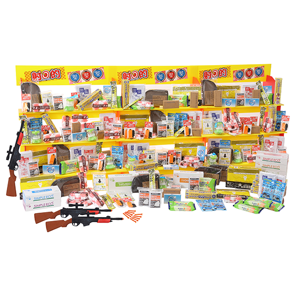 プラダンジャンボ射的大会用の景品、防災グッズ&日用品200個セットです。もらって嬉しい防災グッズや日用品200個をアソートでお届けします!