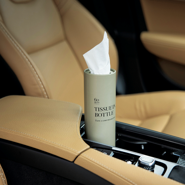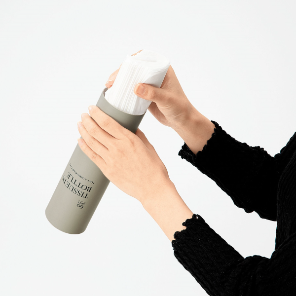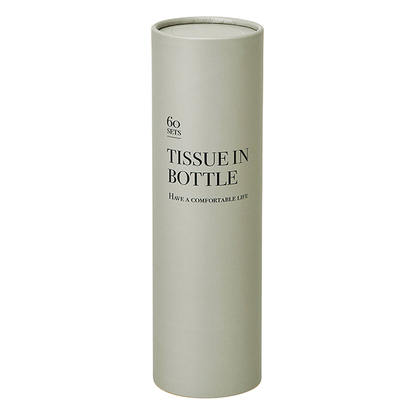 インテリアにもなじむデザイン! おしゃれでスマートなボトルティッシュです。 ぱっと見ではティッシュと分からないビジュアルが魅力。なくなっても市販のボックスティッシュの中身を詰め替えることで再利用できるため、おしゃれアイテムとして生活に馴染みつつ、ずっと使ってもらうことができます。