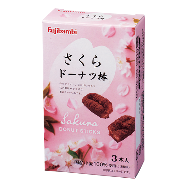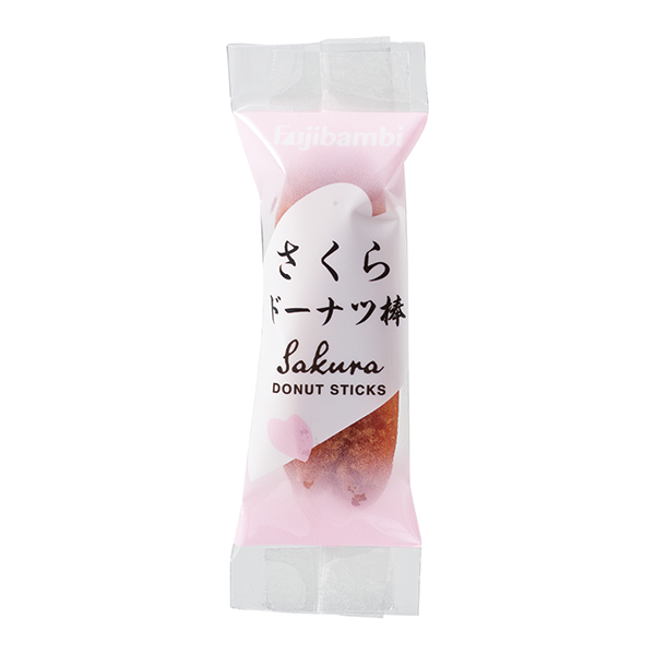 国産小麦粉を100%使用した春限定のドーナツ棒。桜の華やかな風味が広がります。 さくらをデザインしたパッケージもポイントです。