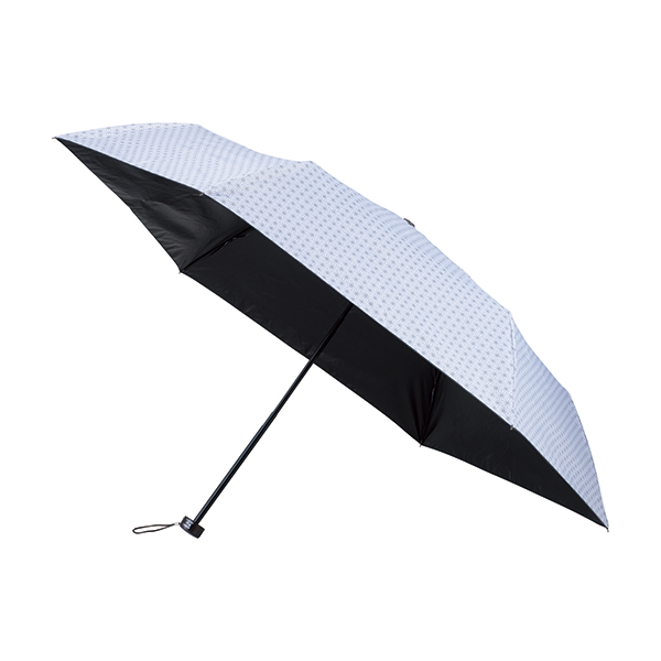 反射焼けを防ぐ人気のブラックコーティング。落ち着いたモノクロ和柄の晴雨兼用折りたたみ傘。 男女兼用でお使いいただけます。