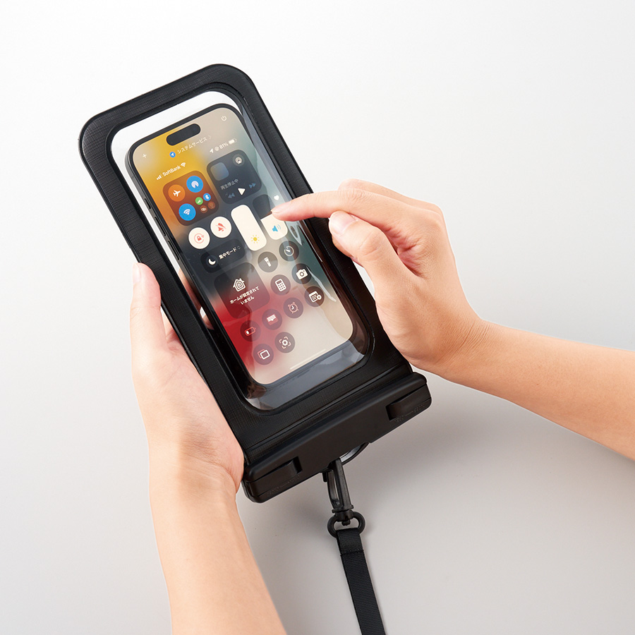 ポーチに入れたまま、スマホの操作や通話も可能なため、夏のレジャーや野外の音楽フェス、冬のウィンタースポーツ時など、さまざまなシーンでご活用いただけます。