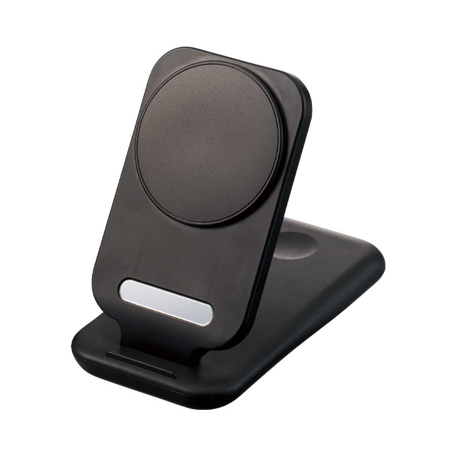 スマートフォン、ワイヤレスイヤホン、AppleWatchが3台同時に充電可能なワイヤレス充電器です。