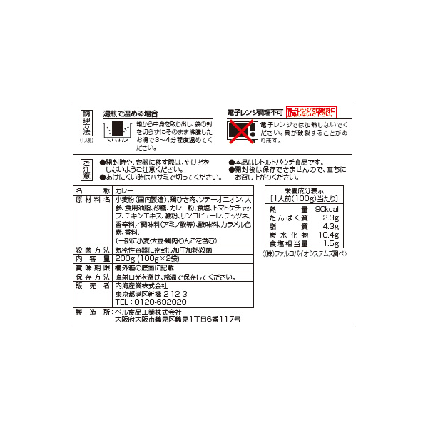 | 付属品 | チキンキーマカレー100g×2 |