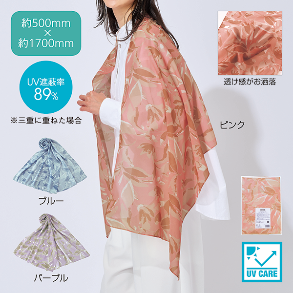 さらりと纏うだけで華やぐ、軽やかなシフォンのストール。 春夏はUVケアや暑さ対策など、女性の関心が特に高い時期なので、おしゃれや悩みにマッチする販促品をノベルティにすると喜ばれます。ファッションやインテリア、美容関連のイベントにどうぞ。