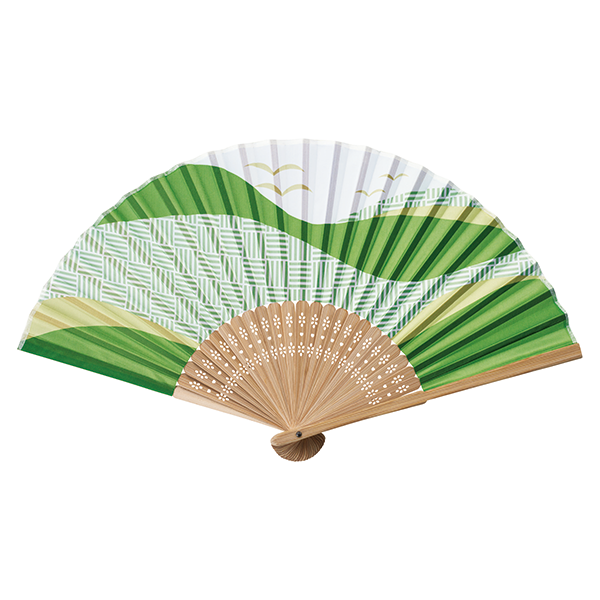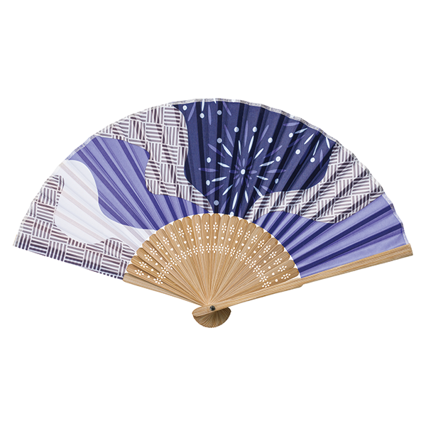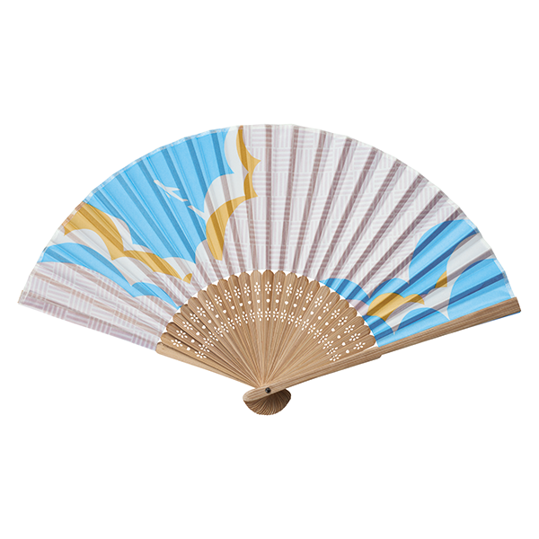 夏の風物詩ともいえる景色をそれぞれ想い描いた和風扇子。 夏の雲の中を突き抜けていく飛行機、波打ち際、穏やかな山間、花火と夜空をイメージした4柄は、シンプルで清涼感があり、持つ人を選びません。