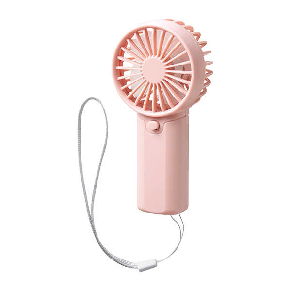 乾電池式のストラップ付ハンディファンは、事前の充電が不要なのが便利なところ。 持ち運びに負担が少ないコンパクト形状で、流行りのくすみ系カラーがポイント。