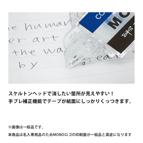 3月末までの限定特価!MONO消しゴム型の修正テープです。消しゴムほどしかない超コンパクトサイズでペンケースに入れてもかさばりません。 ヘッド部分は透明で手ぶれ補正も付いているため、修正箇所にピンポイントでテープを引けます。高密着テープで上書きも安心。すっぽり入って、しっかり使える修正テープです。