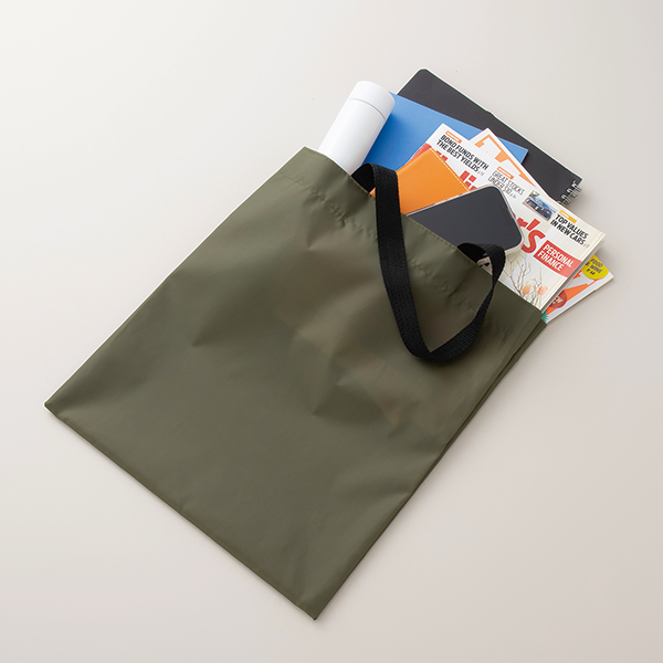 小さくたたんでコンパクトにできるエコバッグです。 見た目に反して大容量なので、お買い物にも便利!A4サイズ対応で展示会の資料・サンプル入れ等にもぴったりのアイテムです。