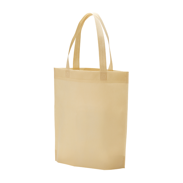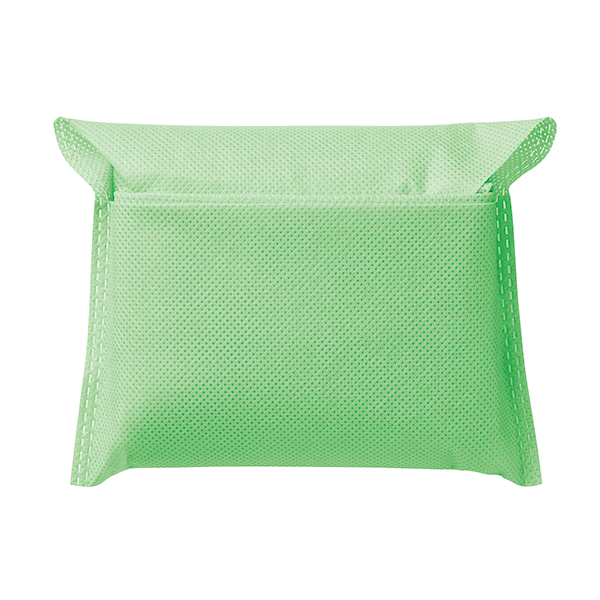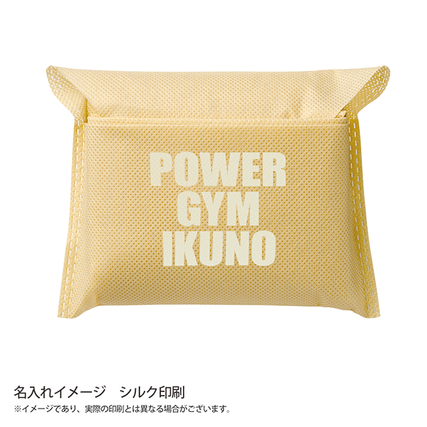 内側のポケットに折りたたみ、コンパクトに収納できる不織布バッグです。 厚みのある物も入れやすい底マチ75mmです。