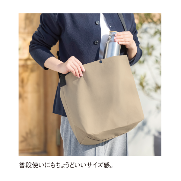 柔らかいコットンのような生地を使用したショルダーバッグです。 普段使いで使えるおしゃれなシルエットが魅力です。ファスナーを開けると保冷温ポケットが出てくるため、急な買い出しにも大活躍します。