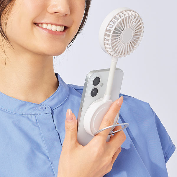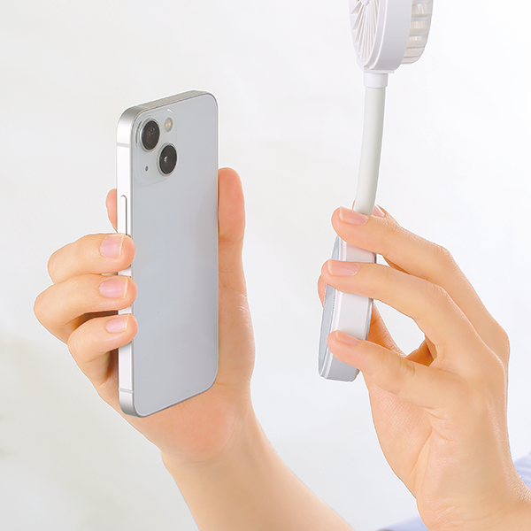 暑さ対策アイテムの定番!フレキシブルに角度を変えられる便利なハンディファンです。 マグネットを使用してスマートフォンに取り付ければ、手軽に涼むことができます。ハンディファンは販促品でも大人気ですから、ノベルティとして選ぶ際は名入れが目立つデザイン、使い勝手の良さを押さえたものがおすすめです。