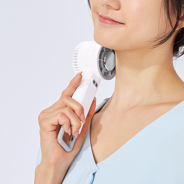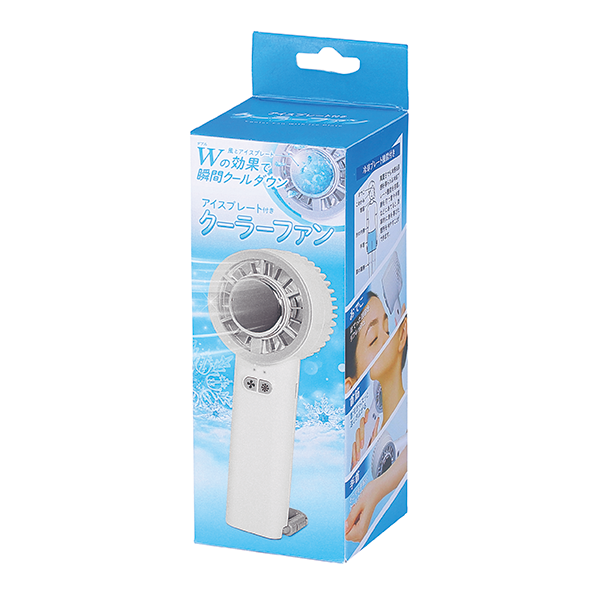 スタンド、手持ちで使える充電式の冷却プレート付き2WAYハンディファン。 持ち手の端にはカラビナが付いているので、フックなどに引っ掛けて携帯、保管も可能です。夏に人気の販促アイテムだからこそ、利便性の高いものを選んで印象に残るノベルティに。