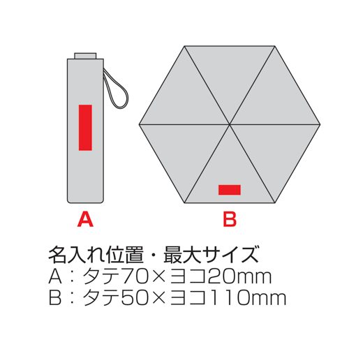 | 1色印刷範囲 | 傘袋:W20×H70mm、傘パネル:W110×H50mm |