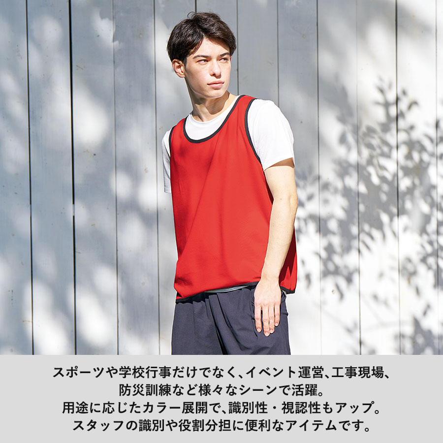 スポーツや学校行事での使用はもちろん、イベントや医療現場、工事現場のスタッフ用、研修時のグループ分けなど、さまざまな用途でご使用いただけます。