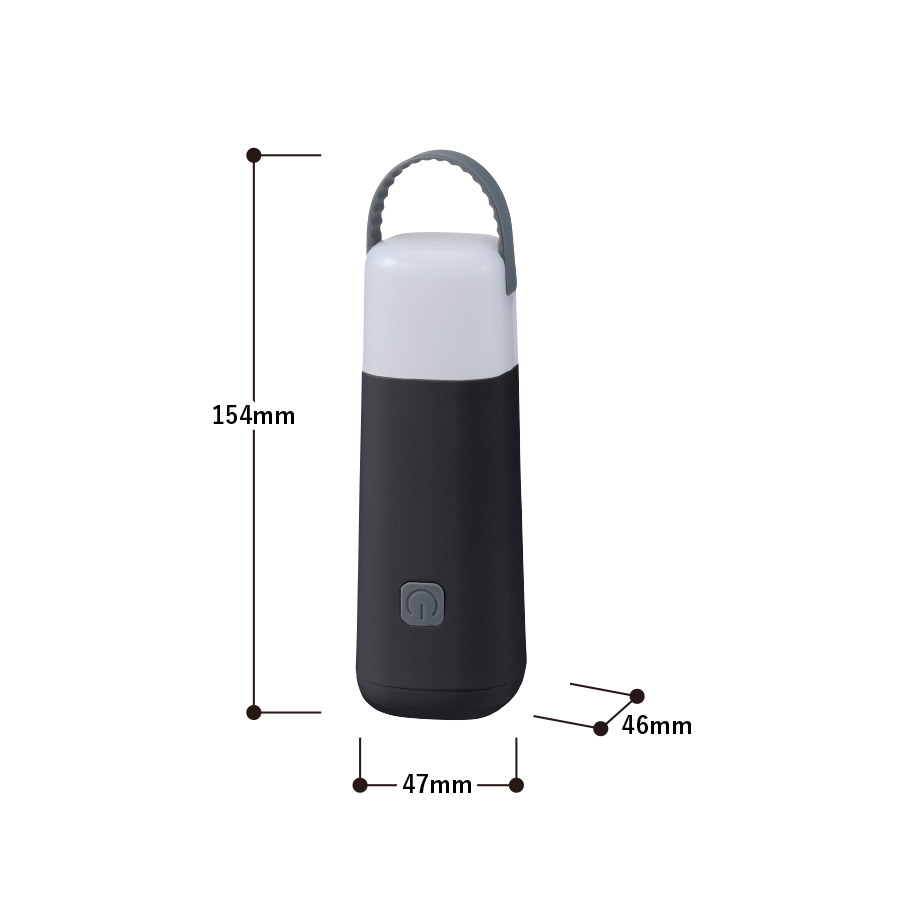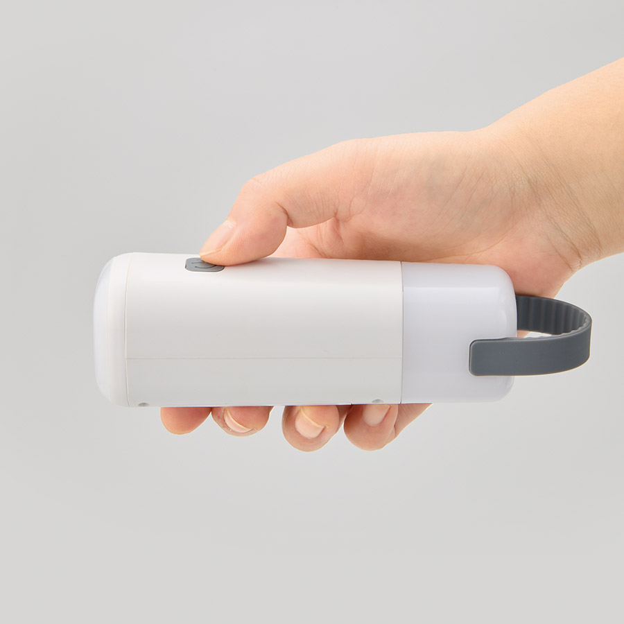3通りの点灯パターンで、「ハンディライト点灯(照射)→ハンディライト点灯(広域照射)→スタンドライト(点灯)→切」の順に切り替えることができます。