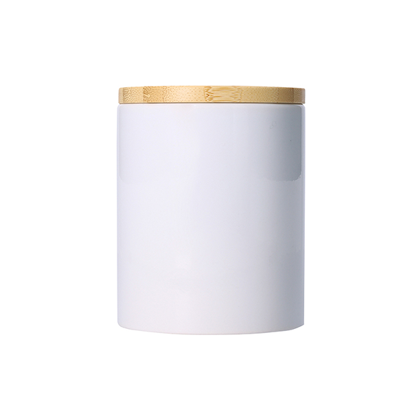 シンプルな磁器製のキャニスターは、竹製のフタをパッキンで閉じることができるしっかり者。